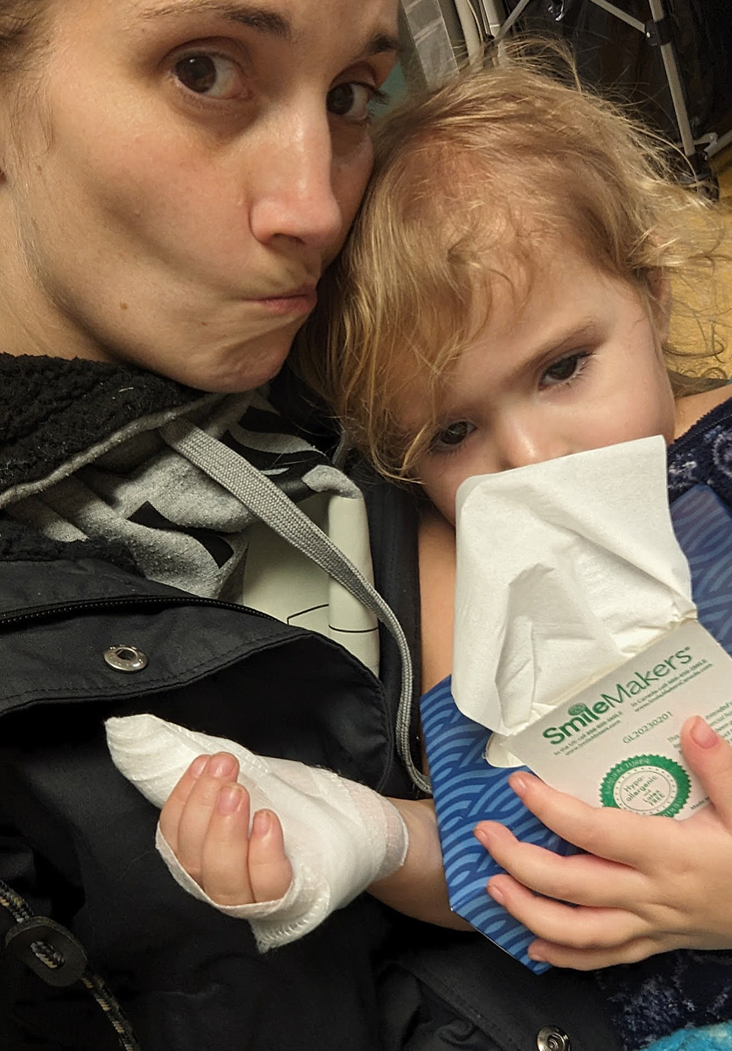 I bundled her up and raced to the truck. Looking over at her, I saw the tears streaming down her face, but she was a total trooper. The hospital was a blur of X-rays and sterile hallways until we reached the surgeon. As they pieced her thumb back together, she didn't scream or cry. She was a warrior. She just closed her eyes and let the music from my headphones carry her somewhere else.